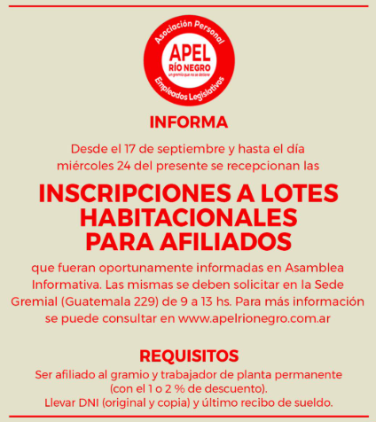 Con una importante concurrencia de afiliados, se concretó la Asamblea Informativa el día 12 de septiembre; donde desde la Asociación Personal de Empleados Legislativos se comunicó la posibilidad de la…